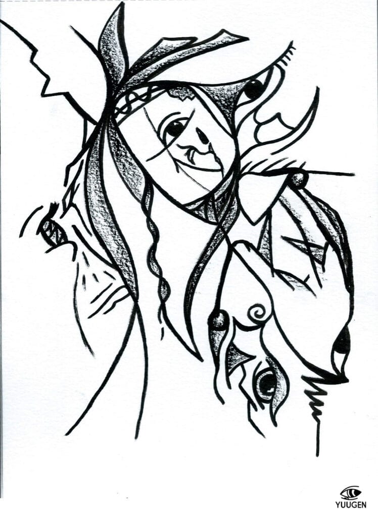 Tintas ecoline, lápiz blanco y tinta negra sobre papel<br/>