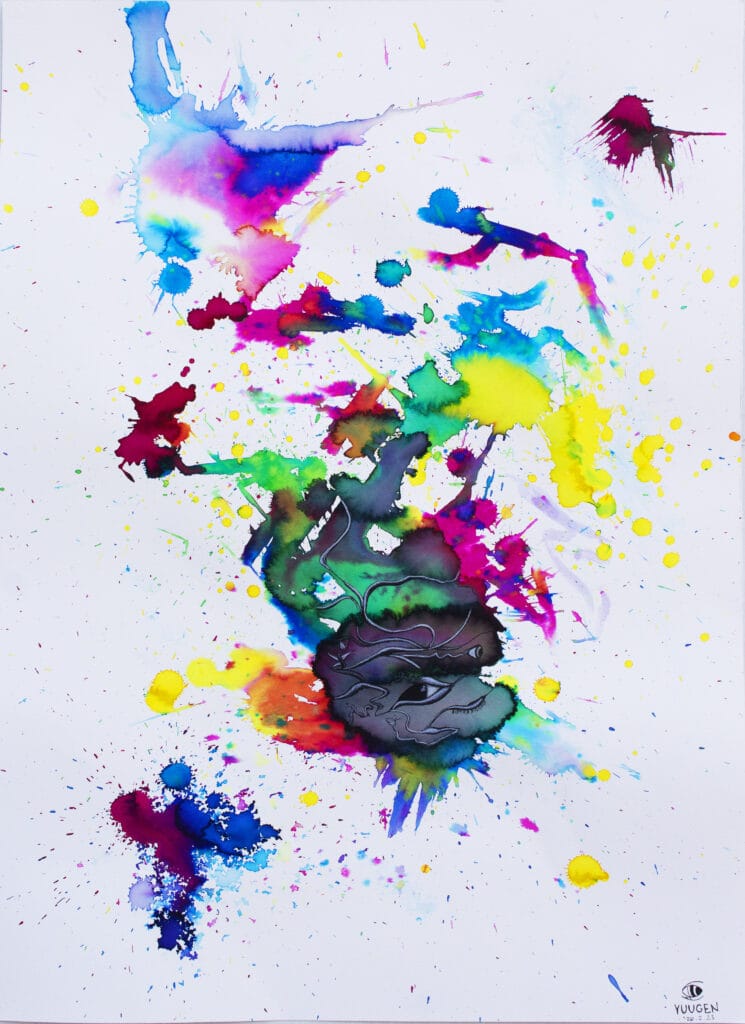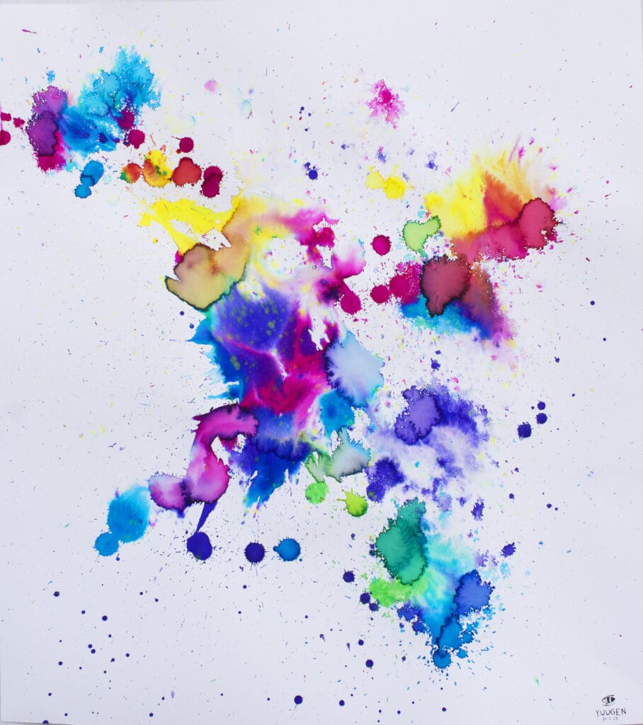 Tintas ecoline y hoja sobre papel<br/>