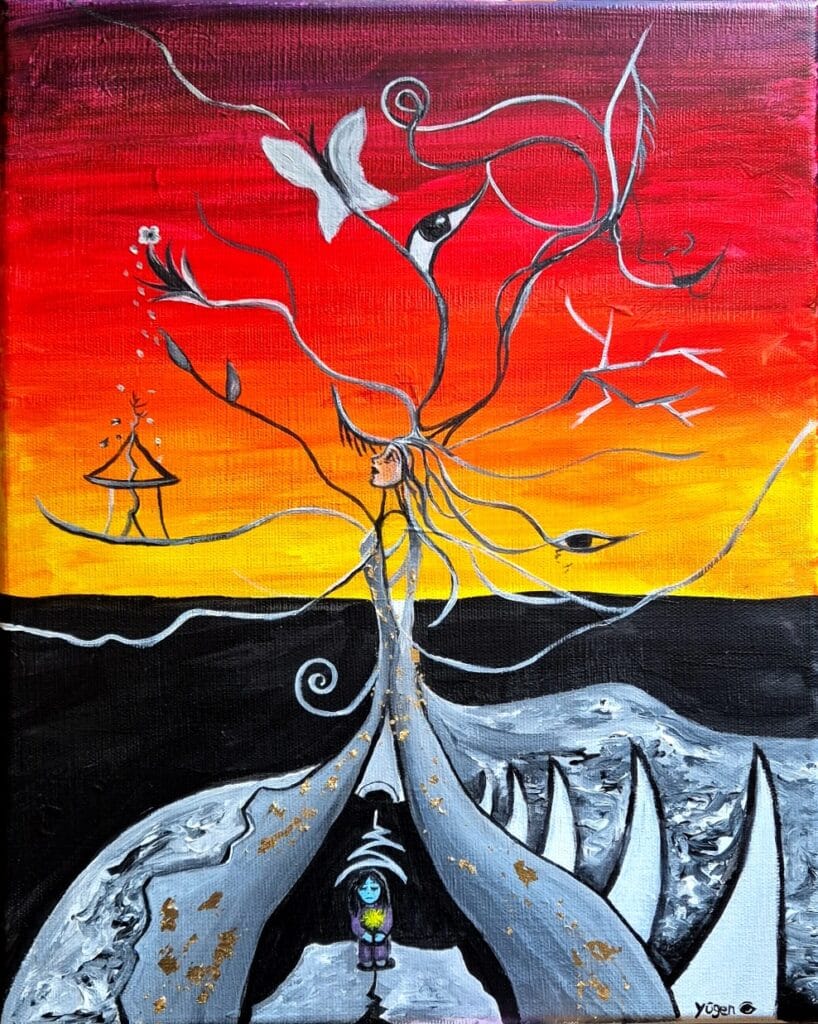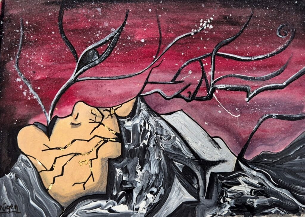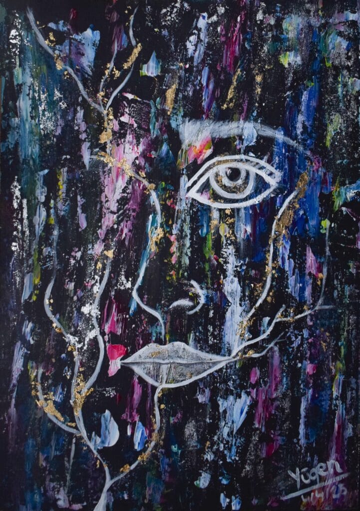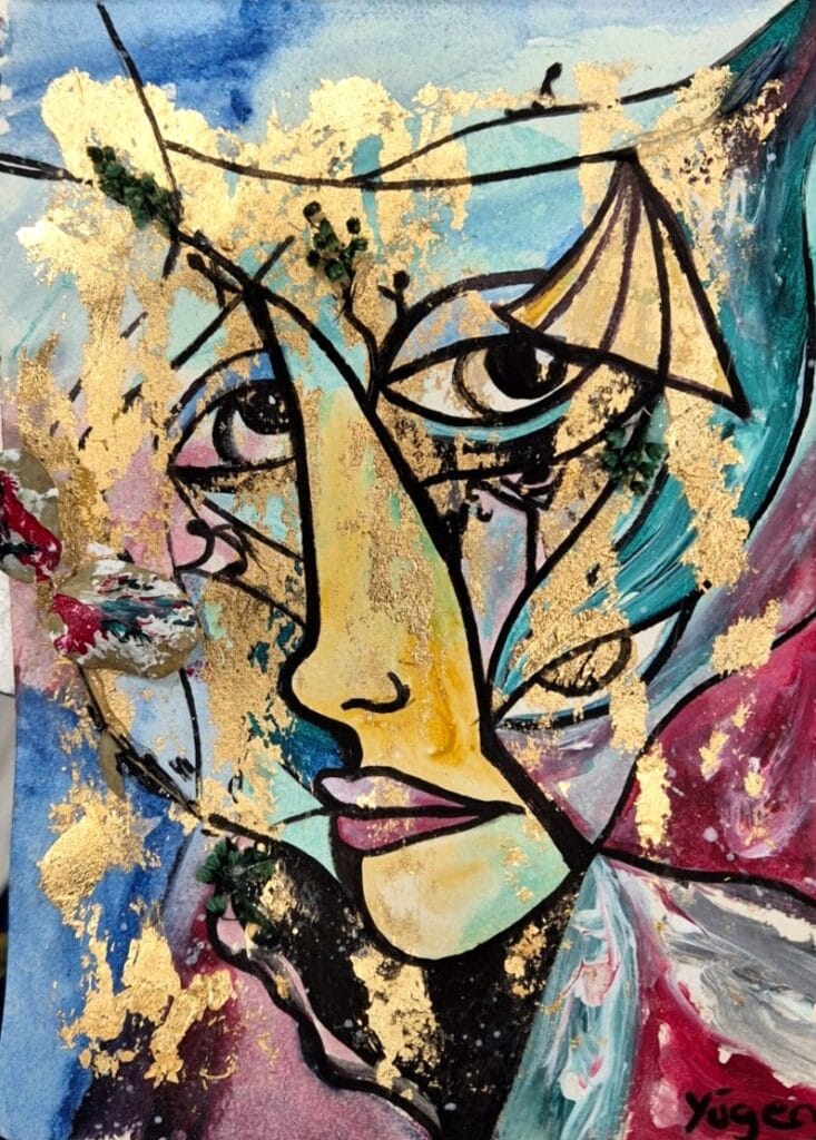 Tamaño: 40x50cm. Acrílico y pan de oro sobre lienzo. Año: 2025. 300€