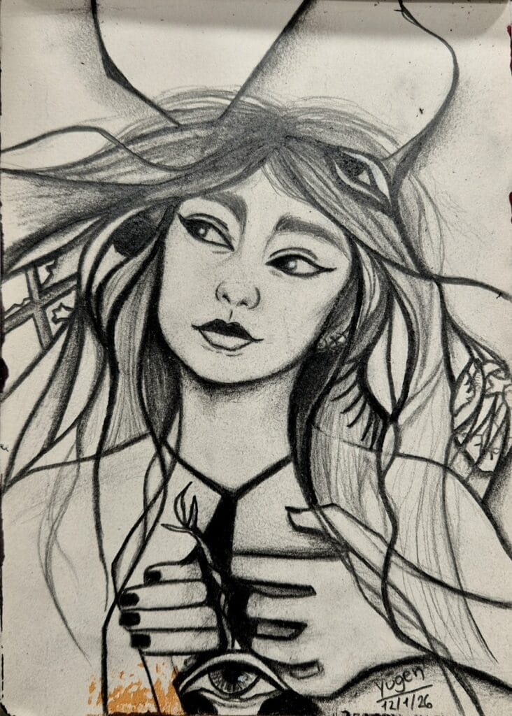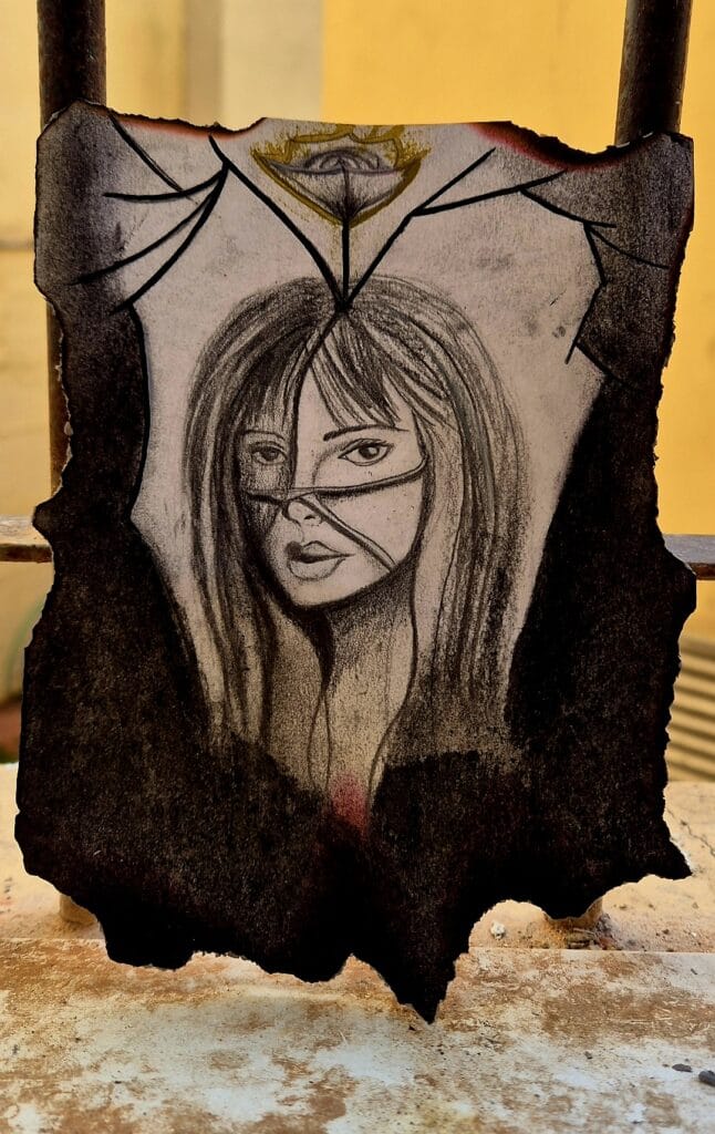 Lápiz y carboncillo sobre papel quemado. Año: 2026. 130€