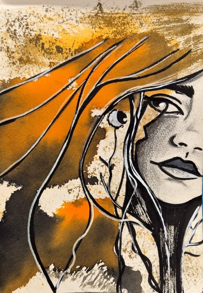 Tamaño: 14,8x21cm. Lápiz y tintas ecoline sobre papel. Año: 2026. 150€
